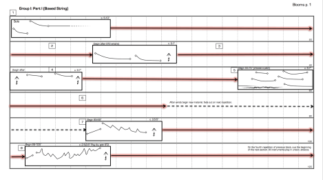Blooms by Kari Besharse was inspired by imagined images of organic, cellular and collective growth in slow motion or under a microscope. The score consists of a series of graphic blocks that the performers interpret and develop on their own or collectively: